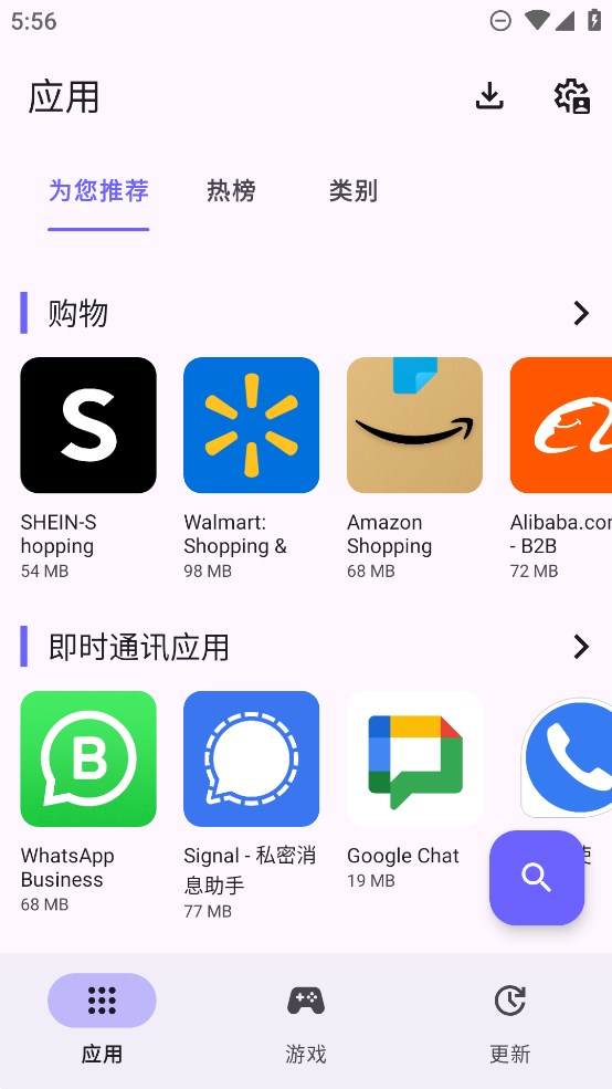 2.用户在其中可以像Play Store一样下载.更新和搜索自己要使用的程序。