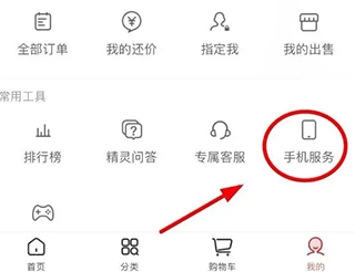 3、点开后滑动屏幕找到手机服务选项。