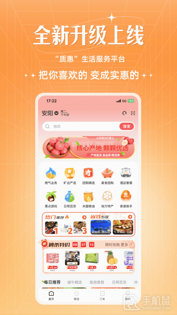 涵盖燃气充值、美食团购、亲子出行、生活超市等。