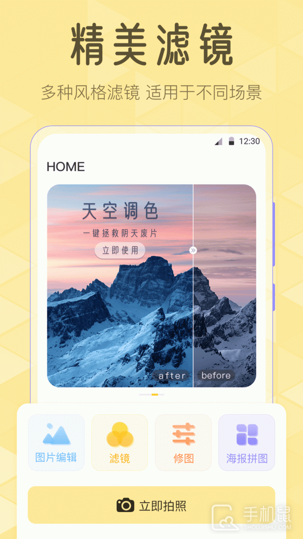 此app界面简洁清晰,操作流畅,适合各类用户使用,不需要复杂的调整过程即可享受到滤镜带来的美化效果,这款app还具备快速导入照片和多种分享方式的功能,方便用户随时随地进行图片处理和分享。