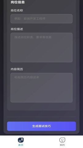 2、填写详细的岗位描述和内容简历就可以生成面试技巧,轻松查看。