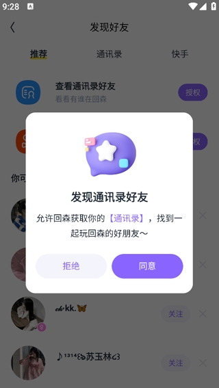 3、然后点击授权通讯录就能看到自己有哪些好友在玩啦,点击关注即可