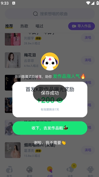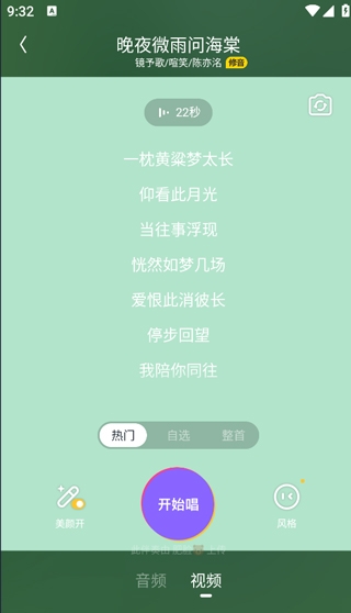 流行歌曲全都有,优质音效,想唱就唱,轻松做麦霸。