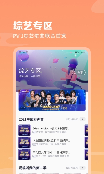 多屏互动:手机、电视多屏幕空间自由切换,打通账号,一键分享好歌,线下KTV打造音乐娱乐小立方。