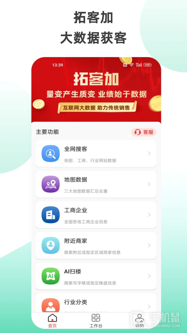 搜客户电销版是一款专为销售人员和客户服务团队设计的高效工具,帮助用户管理客户信息、跟进销售机会、提高销售效率,用户可以轻松记录客户信息、沟通历史和重要事件,随时查看客户近况,并定时提醒跟进任务,确保没有任何销售机会流失,搜客户电销版还提供数据分析功能,帮助用户了解销售进展并制定更有效的销售策略。