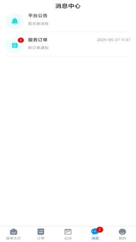 在消息中心可以查看到平台公告、新订单通知信息,了解最新通知的新订单信息。