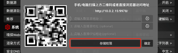 2、支持两种导入视频源的方式,一种是网络链接,一种是本地文件,前者简单,只要我们把订阅链接粘贴到弹窗的配置栏内即可: