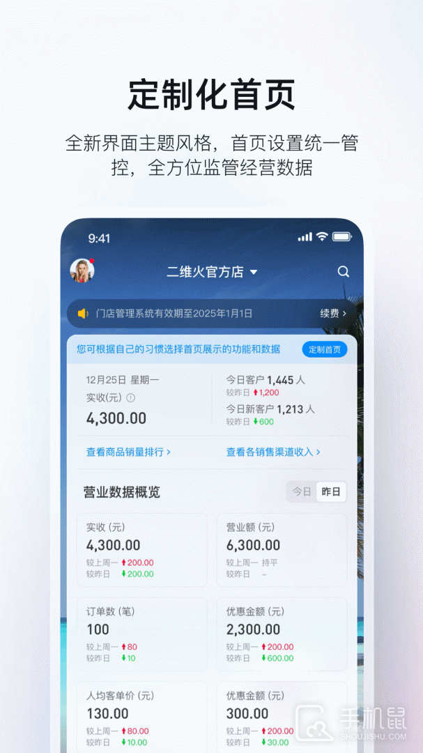 科技的发展让各行各样都变得不断的便捷了起来,不同的应用app所提供的各种功能极大的便利了人们的生活、工作,而二维火掌柜就是其中之一,其是一款专为餐饮服务业设计的高效管理应用程序,它集成了一系列强大功能,帮助餐厅和商铺管理者轻松掌握运营状况,提升管理效率。通过大数据分析技术,二维火掌柜能够多维度展示店铺的经营情况,包括营业额、客流量、热销菜品等关键指标,帮助商家快速洞察市场行情,做出智能化的经营决策。其为餐饮业者提供了一个全面的数字化管理平台,降低了人力成本,提高了运营效率,是现代餐饮管理不可或缺的工具。