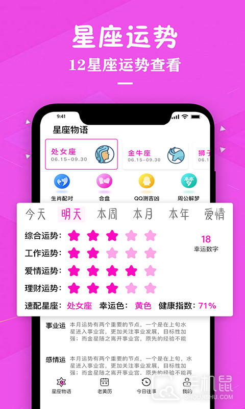 这款app提供包括爱情、事业、财富等方面的星座运势解读,让你全面了解不同方面的情况。