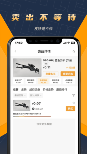 支持用户在线跟商品的卖家进行沟通交流,从而来获取饰品的最低售卖价