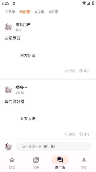 支持漫画分享功能,可以把自己觉得好看的漫画分享到其他平台;