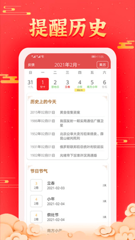 历史上的今天:展示历史上的重要事件,让用户能够在查看日历的过程中增加知识积累。