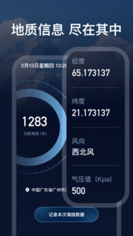 1、海拔高度表:实时测量海拔,无需网络可以准确测量所在地的海拔和经纬度;