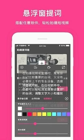 一款拍摄视频的提词神器,不仅能够一键导入台词,还可以根据用户需求自定义提词悬浮窗的设置,