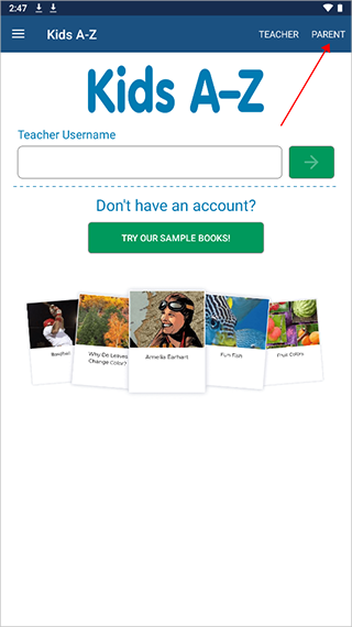 用户需要在Raz-Kids官网上进行购买相关产品才可以得到一个老师所给的账号,然后输入教师姓名 ,选择小朋友名字,输入密码就完成登录了。在app上的具体操作如下: