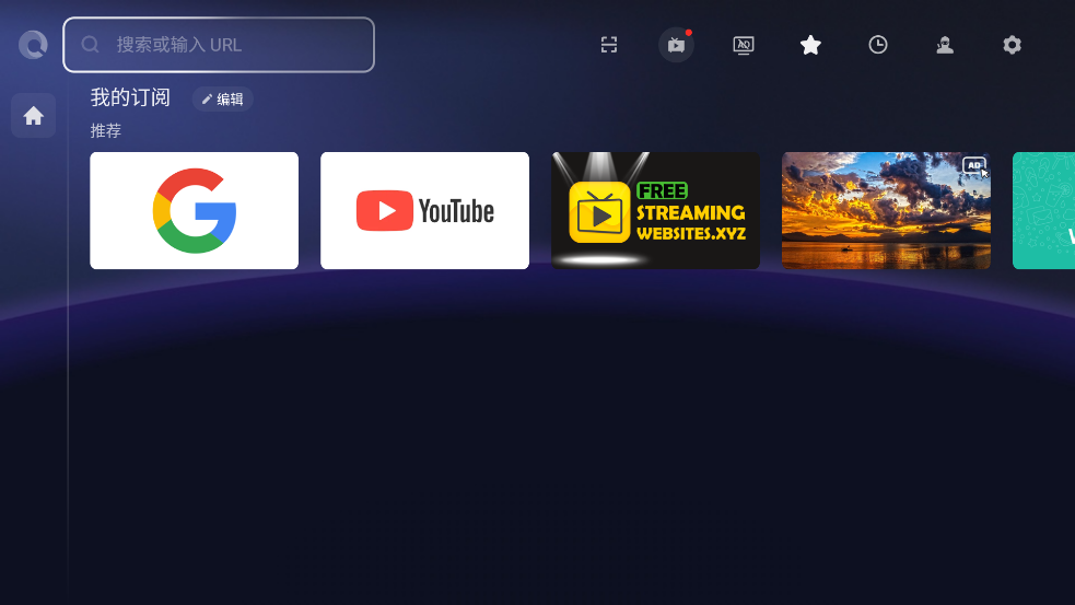 用户界面最精致的电视互联网网络广告屏蔽浏览器之一,可免费用于 TCL 安卓电视和安卓电视盒以及安卓机顶盒。您可以轻松流式传输电影、连续剧和在没有广告的情况下上网。借助内置的 Android TV OS 支持,它可以与电视遥控器一起使用。它包括书签、浏览历史记录、搜索引擎快捷方式和 cookie 拦截器等功能。