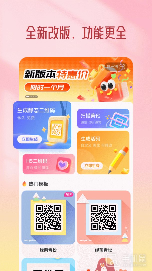 2、多种操作服务工具应用专区,除生成美化之外还有扫描美化以及H5二维码生成制作等