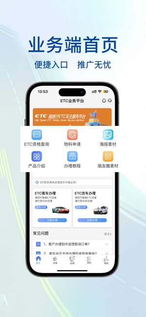 高速行业务端是一款专为客车与货车设计的ETC业务管理软件。用户可在线申办ETC,享受实时办理、极速审核等便捷服务。功能涵盖ETC办理、二次激活、物料管理、业绩查询等,旨在提升用户效率,优化交通出行体验。由西安酷酷龙网络集团有限公司开发。