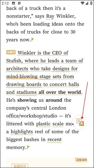 2、进入到文章阅读界面,点击页面右侧的“中英文切换”按钮;