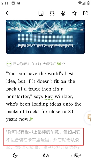 2、每篇文章,都会高亮你在扇贝上学过的单词,让你感受到不断增长的词汇量有用武之地。