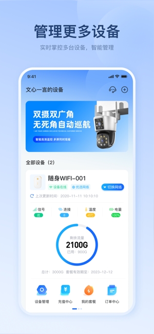 宝技智联集设备管理、流量充值、流量查询、智能客服于一体,可以便捷地管理宝技智联随身WiFi、智能监控等多款无线上网设备,能实时查看设备的剩余流量、信号强弱、电量、温度等状态信息,并进行在线充值和查询,让您轻松上网。