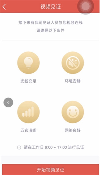 视频见证为双向视频,坐席首先对客户是否本人进行核验,并对客户开户意愿进行确认。见证结束后,客户点击“下一步”,进入下一环节