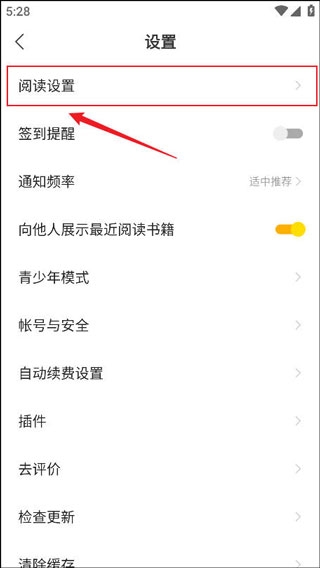 3、紧接着选择【阅读设置】