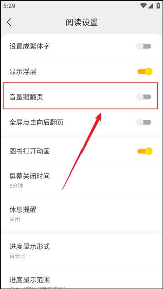 4、最后将音量键翻页开关打开即可