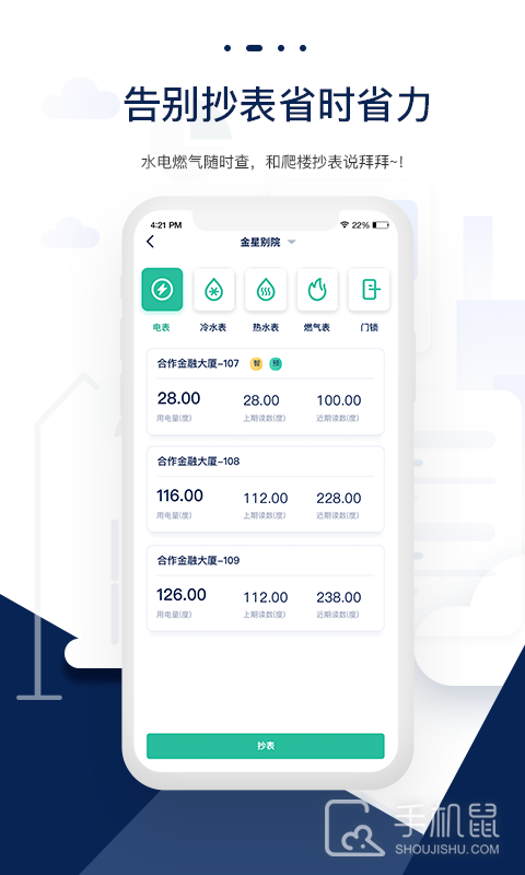 5、直接选择抄表,立即查看水表、电表或者门锁信息,随意管理