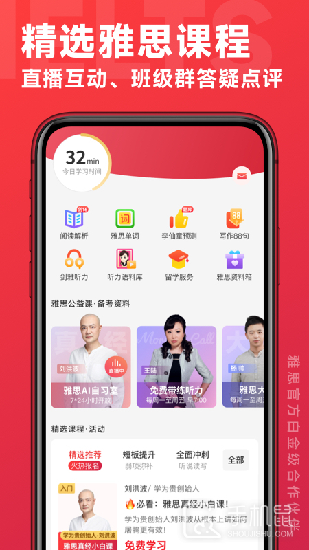 这款app提供了雅思听力、阅读、写作和口语等四个方面的备考内容。学生可以通过在线课程和模拟测试来提高雅思成绩。