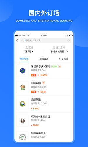 4、全国资源整合:运用移动互联网技术,整合全国高尔夫球场资源,方便用户查询和预订。