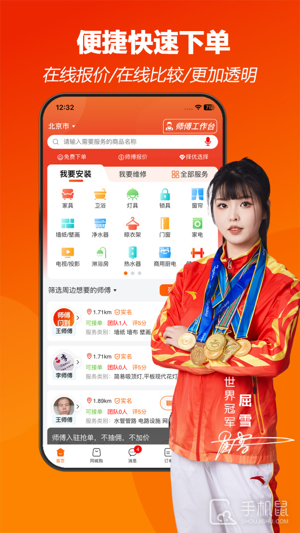 《师傅闪到》是一款专为学习与工作繁忙的人群打造的实用工具类安卓应用,用户可以通过该app快速找到身边的各类技能师傅,如家政、维修、美容等,解决生活中遇到的问题,用户还可以在应用内查看师傅的评价和价格,选择适合自己需求的师傅进行预约服务。用户可以在社区当中发布自己的维修动态,和朋友分享自己的维修过程,通过回放视频,可以在其中查找到各类维修技巧。