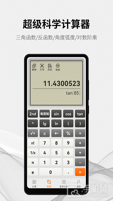 1、【科学计算器】高效的基础计算器之外,支持三角函数计算器、角度弧度、反函数、对数、阶乘计算器