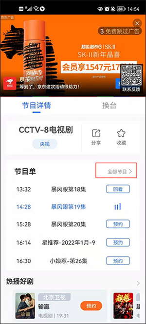 3、进入之后,点击【节目详情】下面的频道。