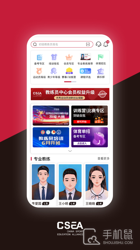 包括教练员的专业素养培训、以考代培,教练员岗位培训、证书申请,教练员等级认证的申请、查询等。