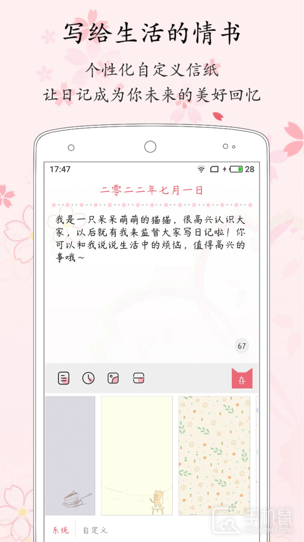 粉萌日记是一款专为喜欢可爱风格的用户而设计的日记记录app,它提供了各种可爱的主题和贴纸,让用户更好地记录自己的生活点滴,用户可以随时随地写下自己的心情,记录重要事件,并添加照片和音频笔记来丰富日记内容,粉萌日记还内置了提醒功能,帮助用户定期回顾和总结自己的日记。