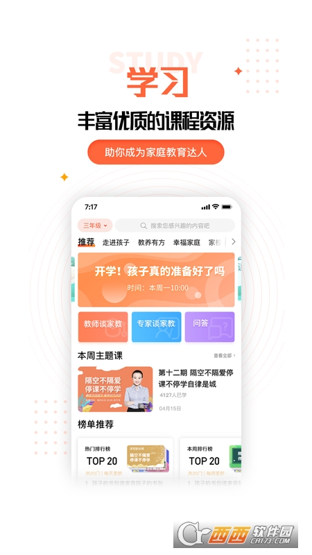 2.满足家长学习需求,提供丰富的家庭教育课程资源,为家长提供系统学习课程、优质的校研课课程与名师课程。