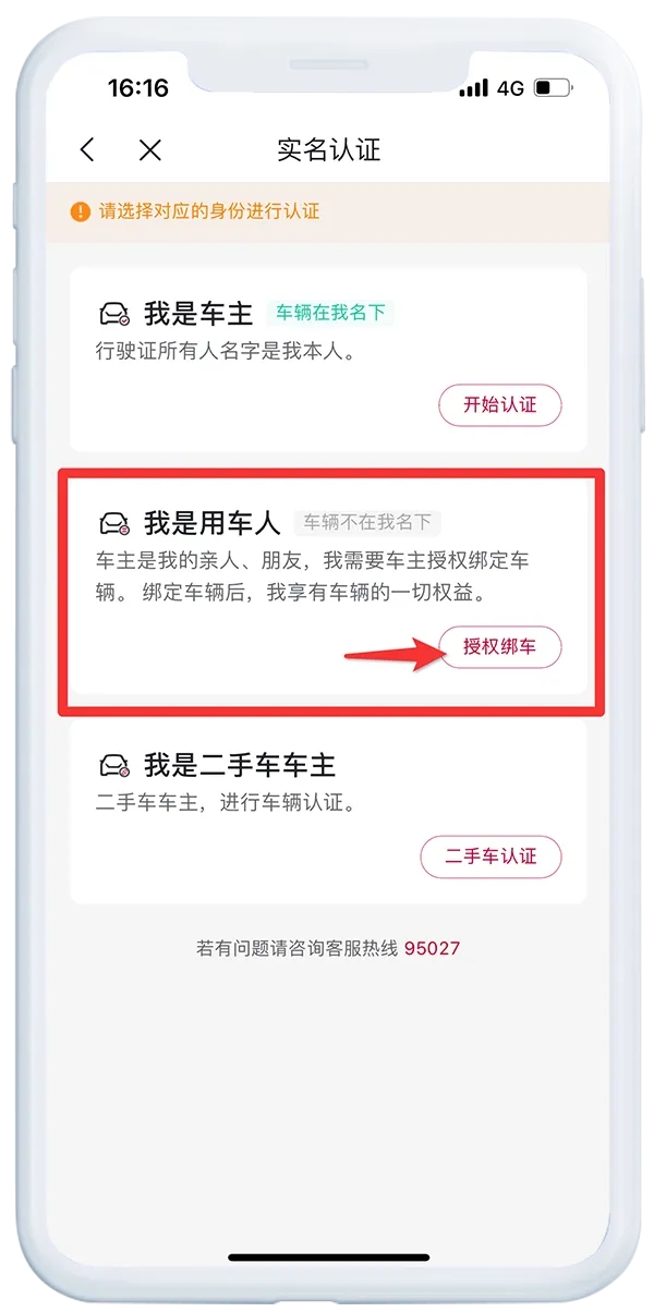1、点击我的,找到车辆认证入口,然后选择绑定车辆