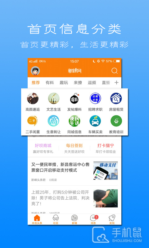新嵊网是一款集实时资讯、生活服务、社区互动于一体的综合性安卓app,用户可以通过新嵊网获取最新最快速的本地资讯,包括新闻、天气、交通等信息,方便生活,用户还可以在新嵊网上获得周边商家优惠活动、点评推荐,满足各种消费需求,社区功能让用户可以随时随地与附近的人群交流、分享信息,拉近彼此距离,新嵊网致力于为用户打造一个便捷、互动、有趣的生活平台,让用户轻松掌握生活节奏,畅享城市生活。