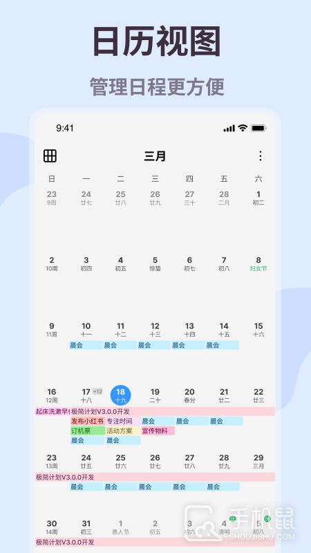 -时间规划:日历视图让您一目了然地安排日程。