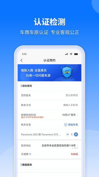 检车家app是一款二手车检测预约平台。提供二手车一系列的购买流程,包括二手车的检测、选择、购车等环节,拥有专业的二手车检测团队,根据用户的喜好以及市场趋势适时更新车辆信息,帮您节省很多时间,让您选择不再烦恼。软件操作简单,一键点击,不只是二手车,用户也可以选择自己的爱车进行保养维修预约,随时调整车辆信息。