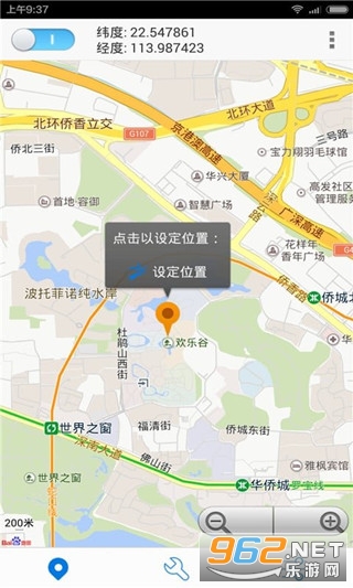 6、轻点左上角的神行者按钮,图标上会冒出气泡,同时文字部分显示经纬度,界面下方还会出现「操作成功」的提示。恭喜,你已成功定位!