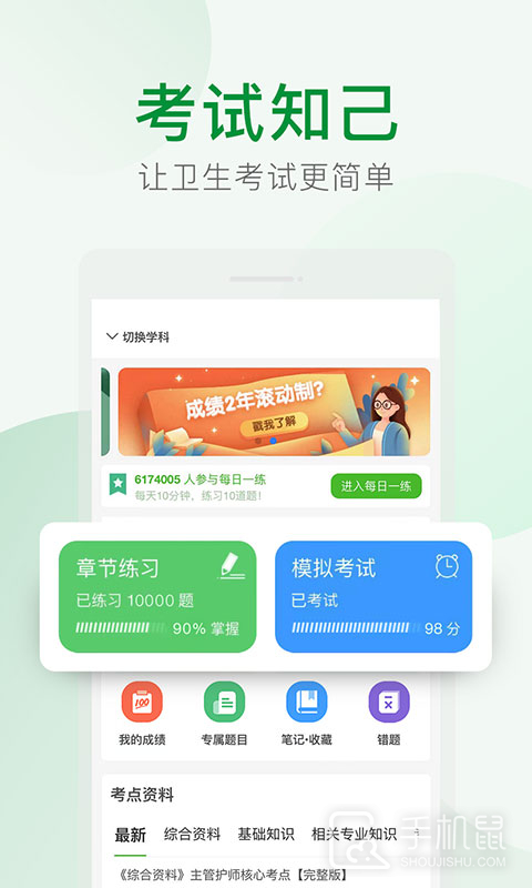 考试知己是一款专为考生打造的学习助手应用,无论是中小学还是大学阶段,这款app都能提供全面的学习内容和考试准备支持,通过整合各类优质教学资源和题库,考试知己为用户提供了丰富多样的学习资料、习题和模拟试卷,帮助用户系统地复习知识点,并进行针对性训练,考试知己还有个性化学习计划和进度管理功能,根据用户的任务安排和时间分配,帮助用户合理规划学习进度,有效提高学习效率,考试知己还有实时答疑和题目解析等功能,用户可随时随地获取辅导老师的指导与帮助。