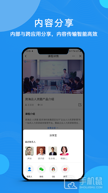 在云经理中进入文件模块,选择需要分享的文件,点击右上角的分享按钮,选择分享方式,例如通过链接分享或者直接发送给指定用户,然后设置权限并确定分享即可。