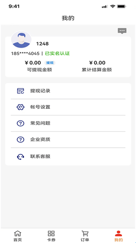 5、可以将卡券回收赚取的收益进行一键提现,提现到私人账户管理;