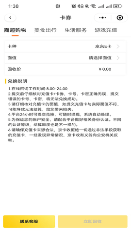 覆盖了全类型的卡券回收服务,各种场景类型的卡券都可以在这里进行回收交易。