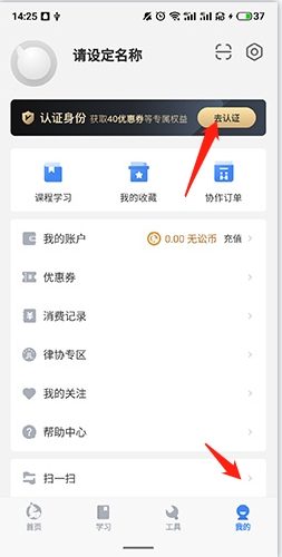 1、打开软件,点击底端的“我的”选项,然后点击“去认证”的选项。