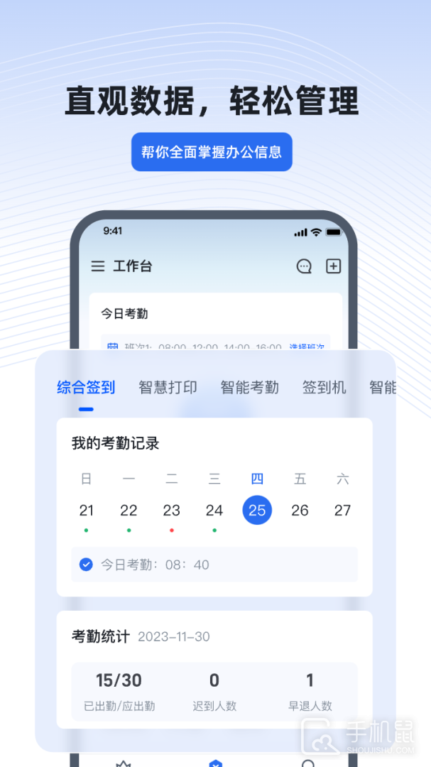 3、智能硬件+软件服务:连接考勤机、门禁机、打印机等多种智能设备,日常工作一手掌握