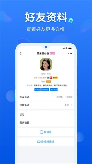 在【聊天】界面,点击右上角带【+】的图标,选择【加好友/群】,通过搜索Bat ID、手机号、昵称添加好友。