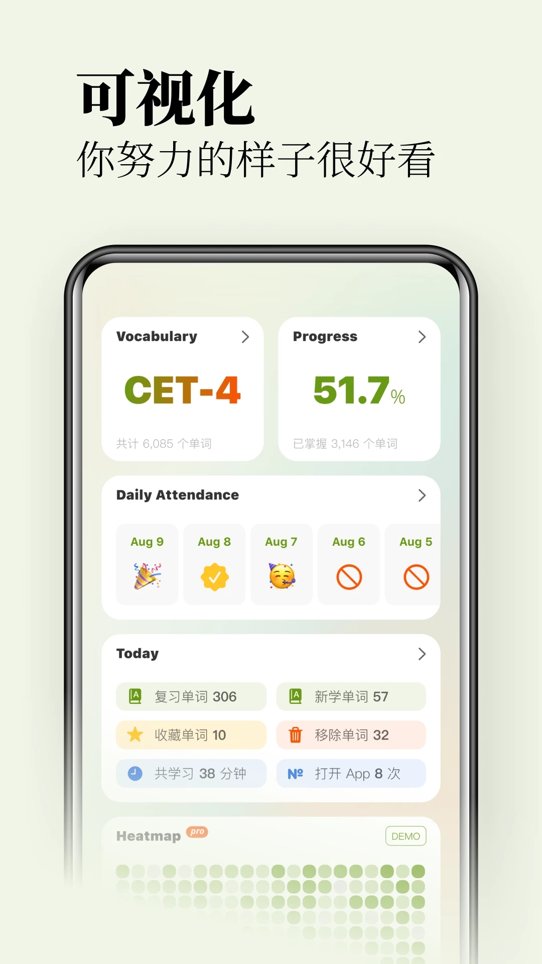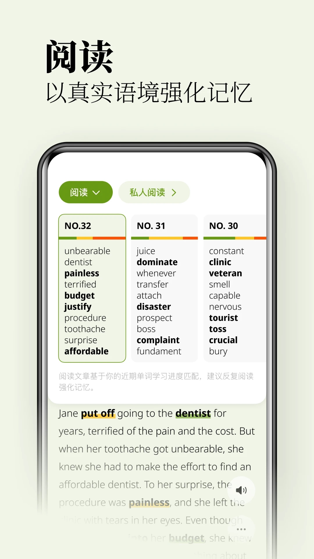 无痛单词app官方版采用卡片式的学习方法来帮助用户记忆单词,每张卡片上不仅包含单词的释义,还有详细的用法和语法规则解析。让你从词源上了解单词,掌握单词,提高自己的词汇量,有需要的用户赶紧来本站下载吧。